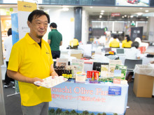 香川県内の企業が出店した出発ロビー=高松空港で「讃岐のイッピン!」販売会