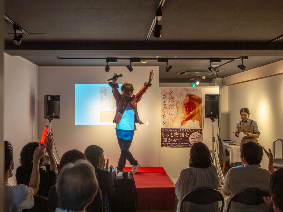 高松出身の小説家で放送作家の小西マサテルさんが10月4日、著書「名探偵にさよならを」の発売を記念したトークショーを「ギャラリー・ミヤワキ」(高松市丸亀町)で開いた。