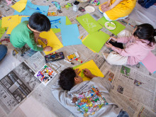 地元の芸術家が小学生と共同で作品を制作するワークショップ「イロいろカラフルアート」が11月15日、高松市立栗林小学校で開かれた。