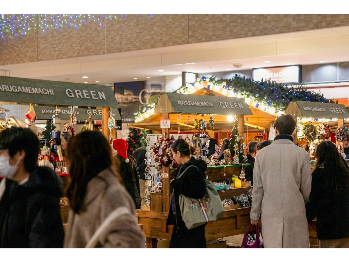 人でにぎわうマーケットの様子=丸亀町グリーンで「丸亀町グリーン クリスマスマーケット2025」