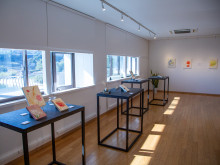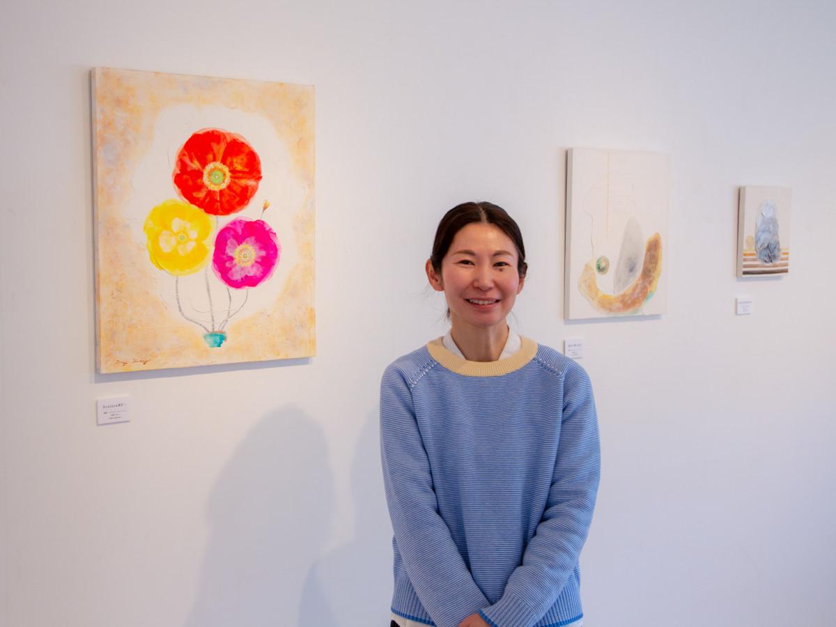 デニーホリミズさんの個展「流れに咲く花」が現在、「歯ART(ハート)美術館」(高松市庵治町、TEL 087-871-0666)で開催されている。