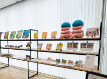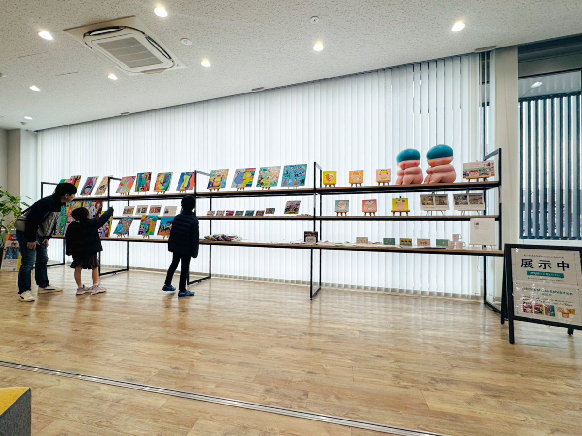 会場の様子=高松・百十四銀行木太支店でミズカさん・Taichi&Shotaの2組のアート展