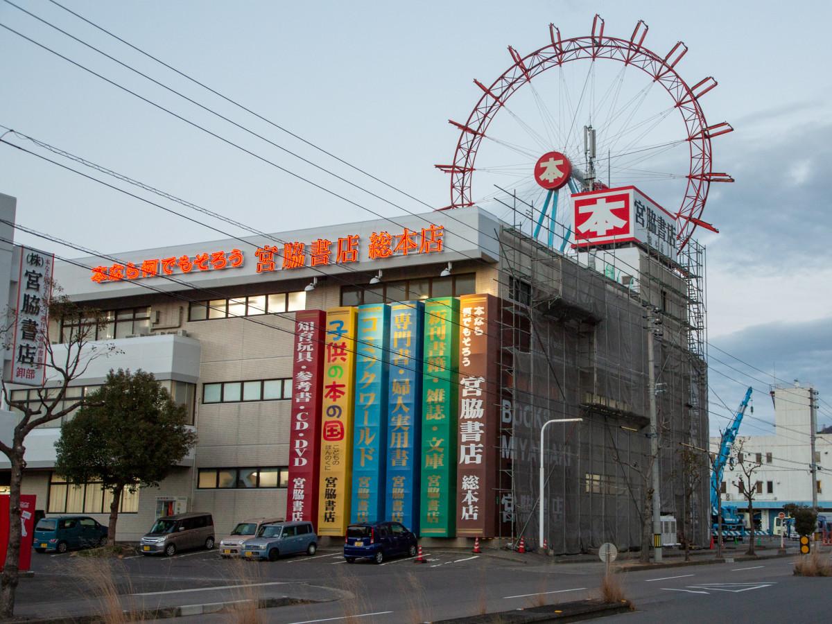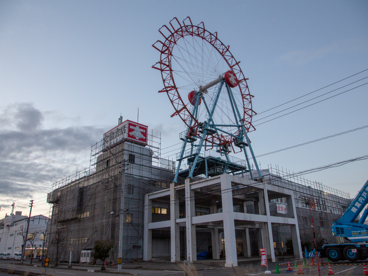 宮脇書店総本店(高松市朝日新町)で1月19日、屋上に設置していた観覧車の解体作業が始まった。