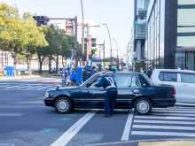 現場には誘導のため、警察官が配置された=高松・菊池寛通り交差点で「歩車分離式」社会実験