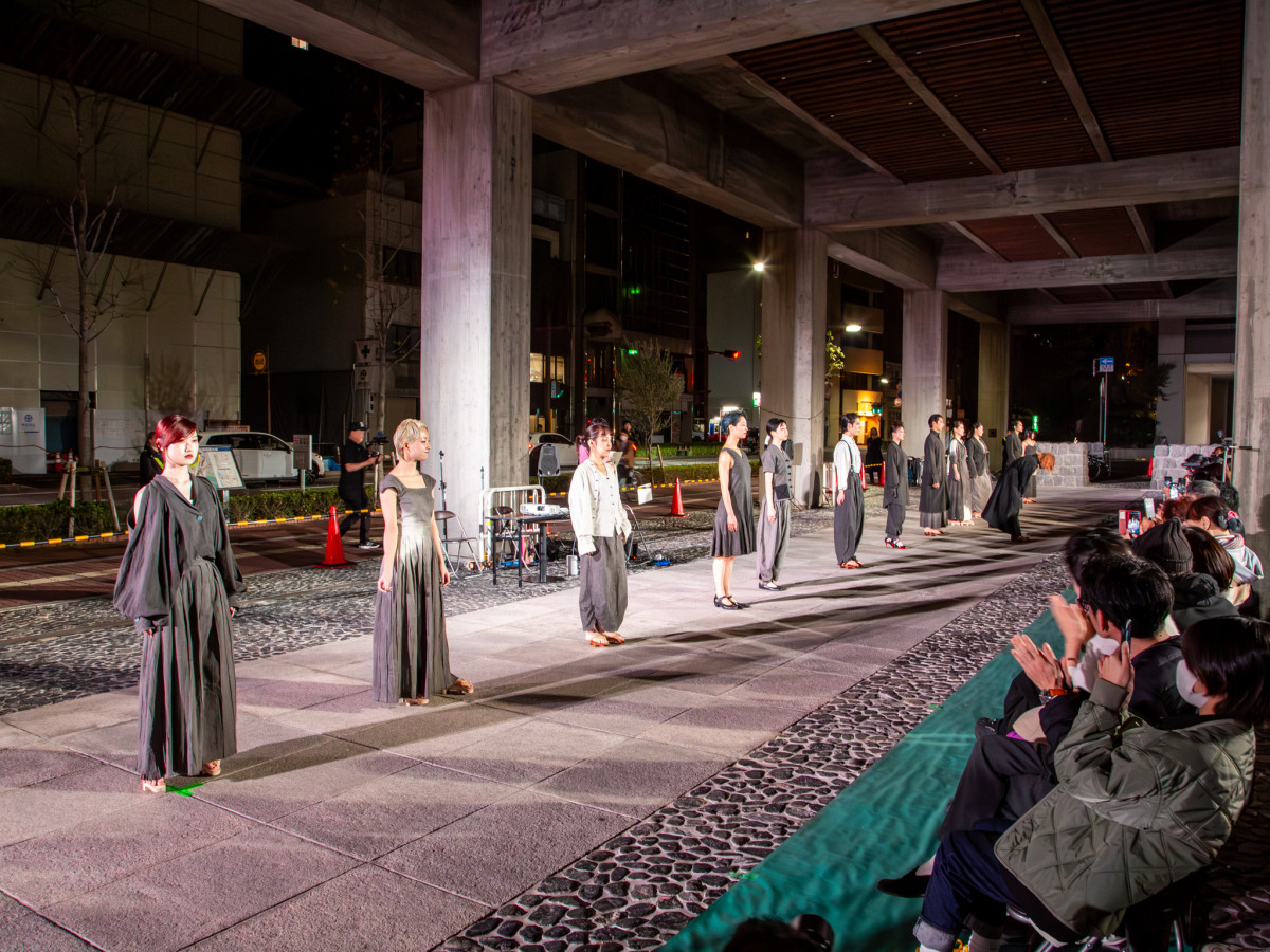 墨汁で染めた布を使う「光と影コレクション」=高松・丸亀町ドームで「保多織」ファッションショー