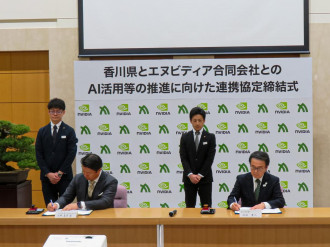 香川県と米半導体メーカー大手「エヌビディア」の日本法人「エヌビディア」(東京都港区)が2月17日、人工知能(AI)活用推進や情報通信関連企業誘致、人材育成などを目的とした連携協定を締結した。