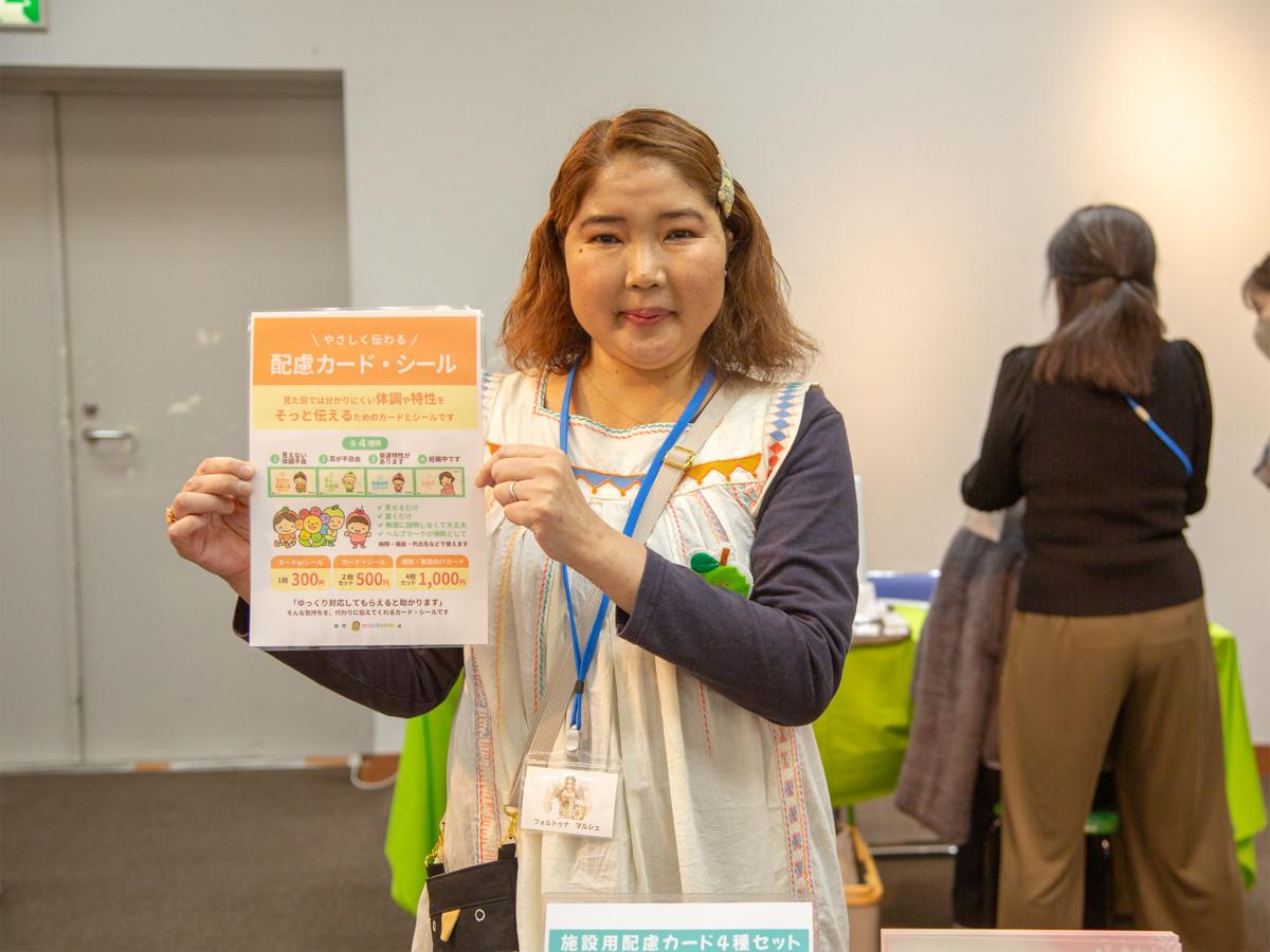 「フォルトゥナマルシェ」会場に並んだ「配慮カード」=高松在住の久保みどりさんが不調伝える「配慮カード」