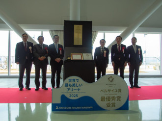 あなぶきアリーナ香川(高松市サンポート)で2月24日、建築・デザインの世界最高峰とされる「ベルサイユ賞」の受賞記念セレモニーが行われた。