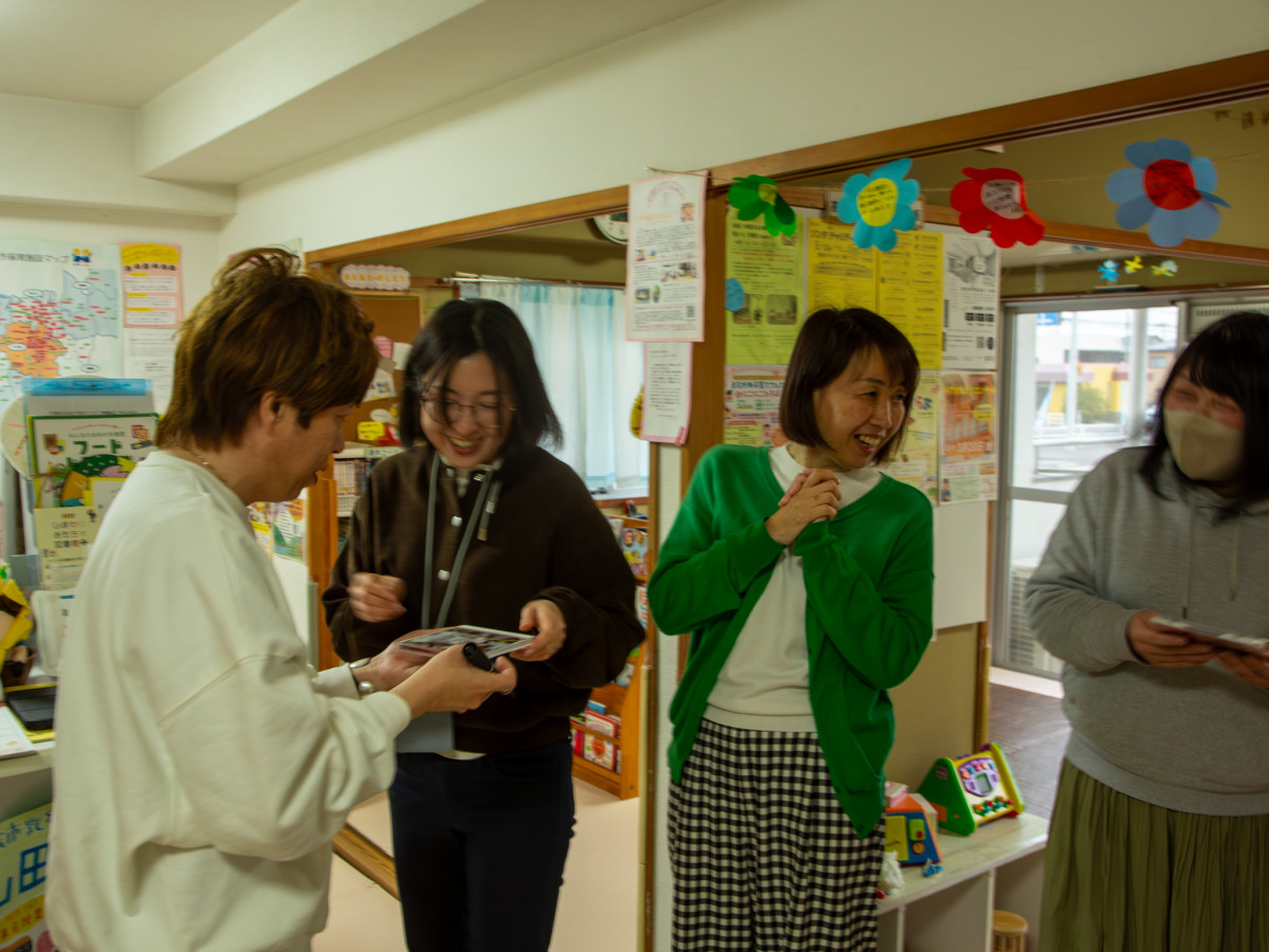 CDにサインして職員に贈る日光さん=高松の歌手・日光壮大さん、「高松市子ども食堂ネットワーク」に寄付