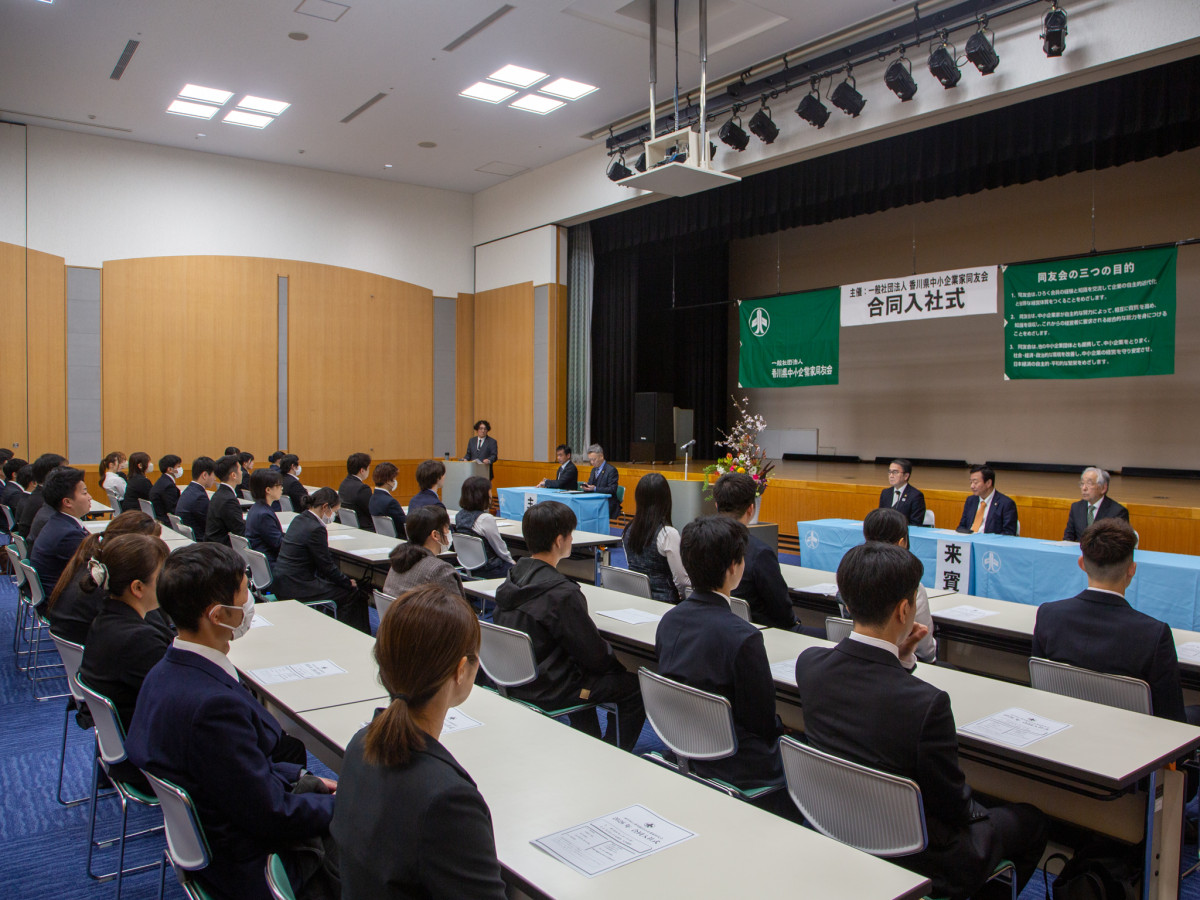 香川県中小企業家同友会による合同入社式が4月1日、サンメッセ香川(高松市林町)で開かれた。
