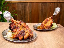 看板メニュー「骨付鳥」は、定番の「ひな」「おや」(以上1,180円)に加え、通常サイズの約1.5倍で数量限定の「種鶏の親」(1,980円)もそろえる。塩とニンニク、数種類のスパイスで下味を付けた鶏肉を、注文が入ってから高温のオーブンで一気に焼き上げる。焼き上がりを数十秒休ませて肉汁を落ち着かせ、提供直前に香ばしさを引き立てるという。