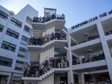 指揮者を務めた同校教諭の山田英司さんが観客のいるオープン廊下側へタクトを向けると、会場全体で「歓喜の歌」の大合唱が響き、年の瀬のキャンパスを包んだ。