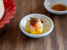 料理は全て王さんの手作り。トリュフを使った黒い皮が特徴の「トリュフ小籠包(ショウロンポウ)」(950円、定食は1,100円)や、「エビシューマイ」(750円、同1,200円)などを提供。このほか、「ルーローハン」、食用金箔(きんぱく)を使った黒い皮が目を引く「カスタードまん」、香港発祥で台湾でもブームとなっているドリンク「楊枝甘露(ヨンジーガムロ)」(以上650円)などを用意する。