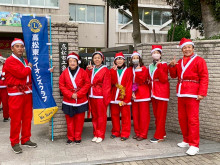 サンタクロースの衣装で交通安全呼びかけの活動に参加する高松東ライオンズクラブメンバーら 左から3番目が金藤友香理さん