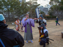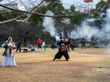近隣の玉藻公園(玉藻町)では、新たに20歳を迎えた若者を対象に園を開放。「高松城鉄砲隊」による演武も行われ、隊員が「おめでとう」と祝福の言葉をかけながら射撃を行う場面もあった。