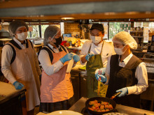 香川県立農業経営高校の生徒が2月20日、「仏生山の森」(高松市仏生山町甲)内のレストラン「窯焼きバーグ五十八」で、入院中の子どもの付き添い家族に向けた「付き添い応援ランチ」の調理を行った。