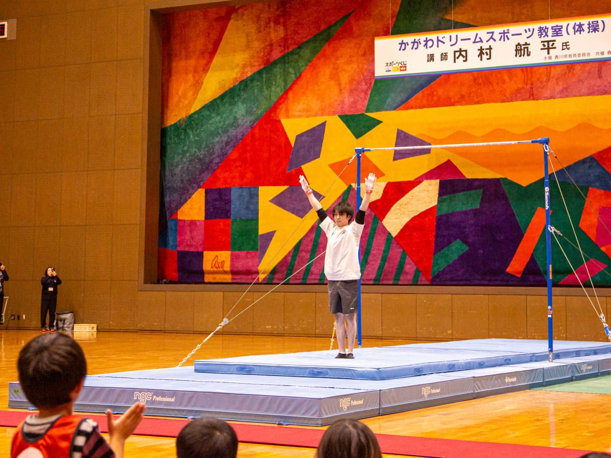 体操競技男子元日本代表の内村航平さんを招いた体操教室「かがわドリームスポーツ教室」が12月6日、高松市総合体育館(高松市福岡町)で開かれた。