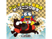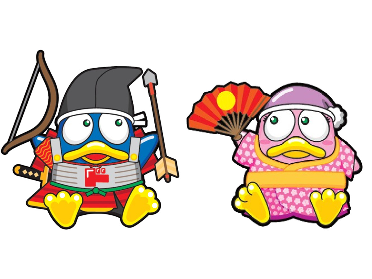 源平合戦の「扇の的」をモチーフにした衣装に身を包む「ドンペン」(左)と「ドンコ」=高松に「ドン・キホーテ屋島店」