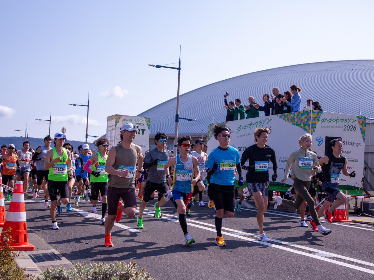 高松市内を発着点とし、近隣市町を巡る初の「かがわマラソン2026」が3月15日、開催された。