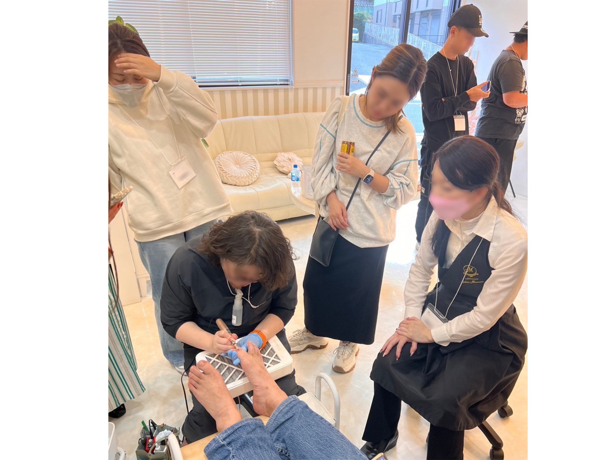 フットケアの様子 施術風景を見学する人も=サンポート高松で「ネイル祭 in 香川」