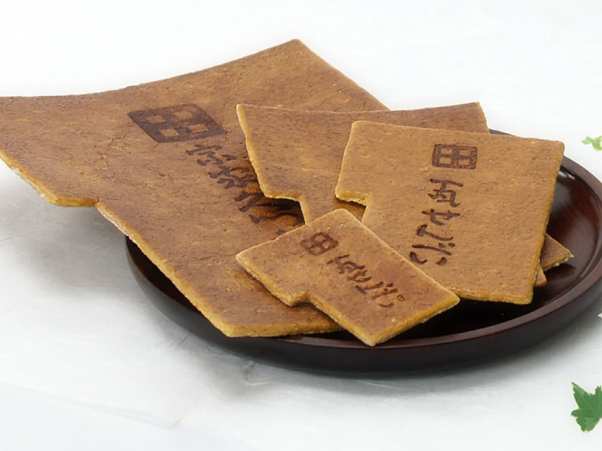 「宗家くつわ堂」の瓦せんべい=津田の松原SAで「チョコ瓦せんべいソフト」