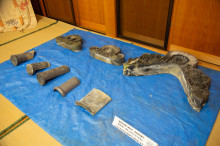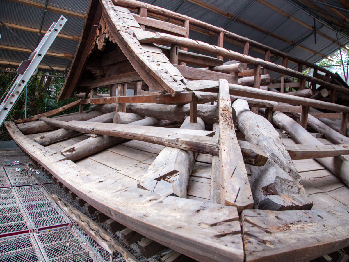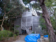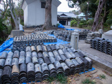 瓦を外した随神門の屋根=高松・宇佐八幡宮で随神門「瓦洗い」体験