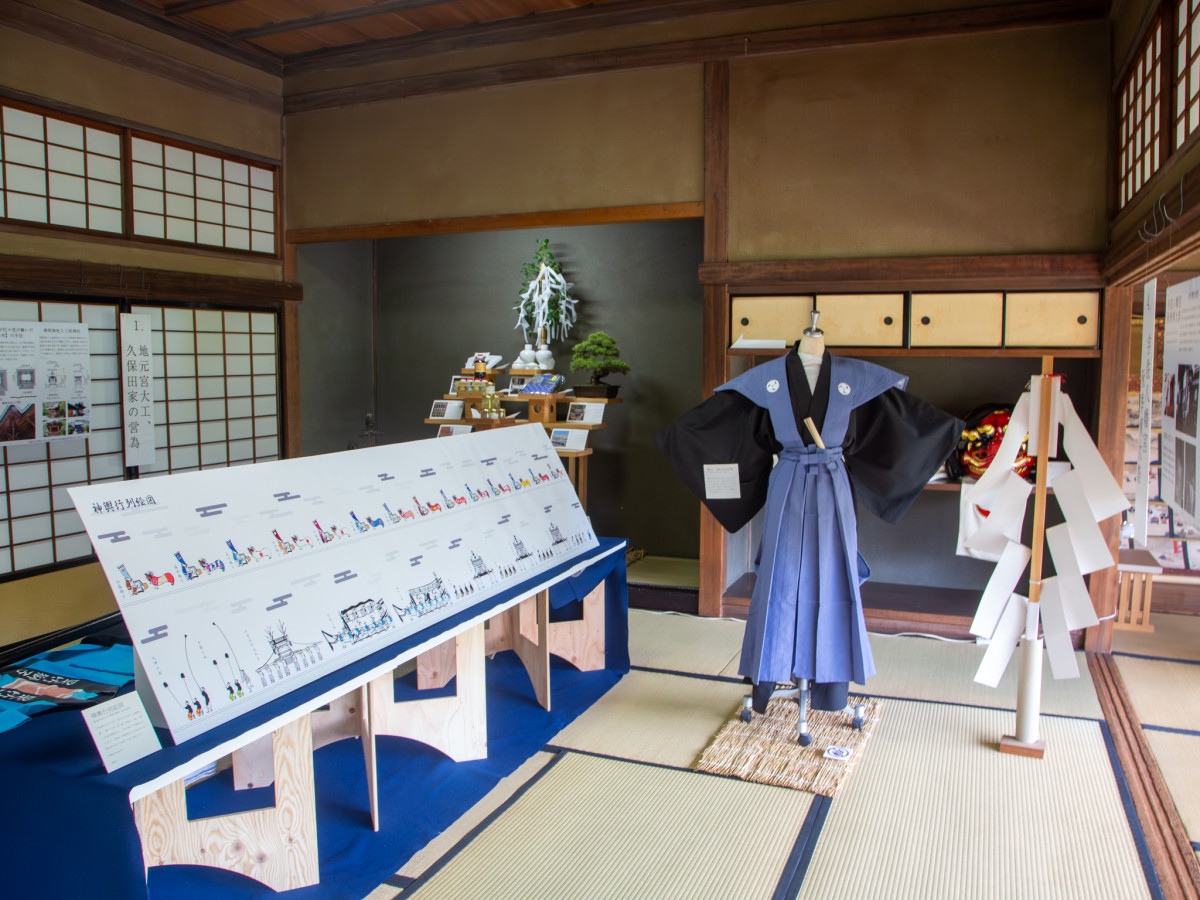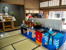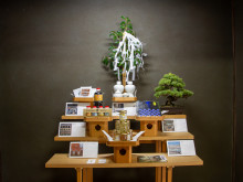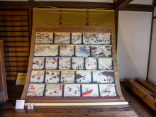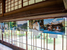 宇佐八幡宮を紹介する展示物が並ぶ会場=高松・披雲閣で「和」を伝えるアート展