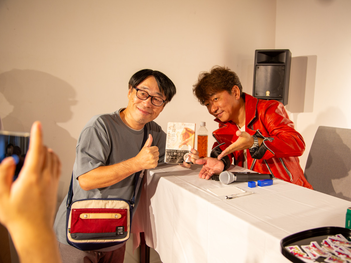 高松出身の小説家で放送作家の小西マサテルさんが10月4日、著書「名探偵にさよならを」の発売を記念したトークショーを「ギャラリー・ミヤワキ」(高松市丸亀町)で開いた。