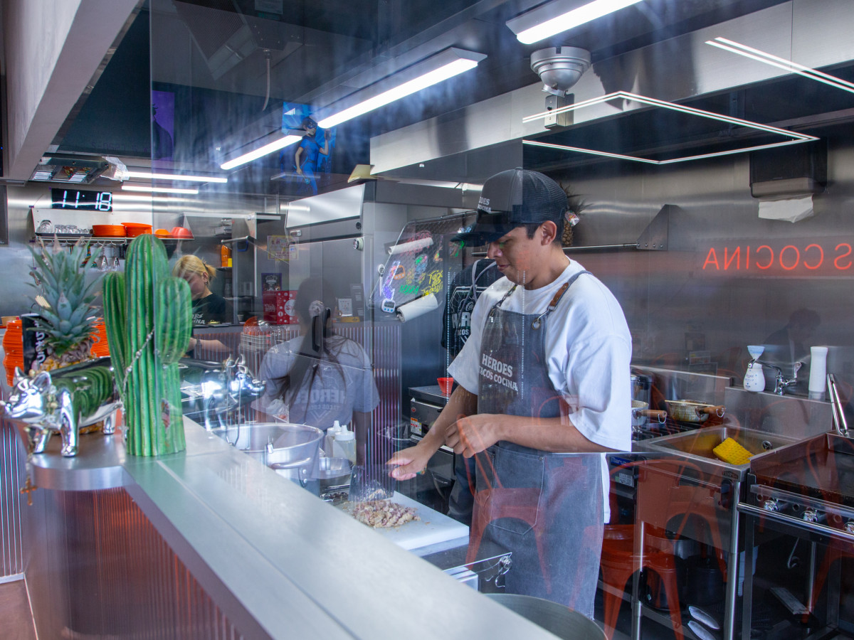 ライブスタイルキッチンでタコスを作っているところも見られる=高松・出作町にメキシカンタコス専門店「HÉROES TACOS COCINA」
