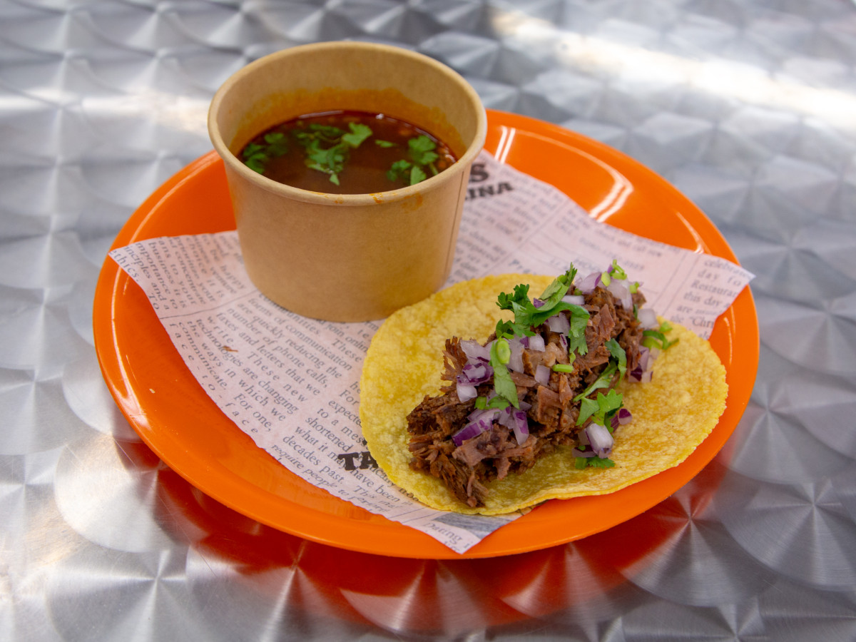 スパイスで煮込んだ牛肉を包みスープに浸して食べる「ビリア」=高松・出作町にメキシカンタコス専門店「HÉROES TACOS COCINA」