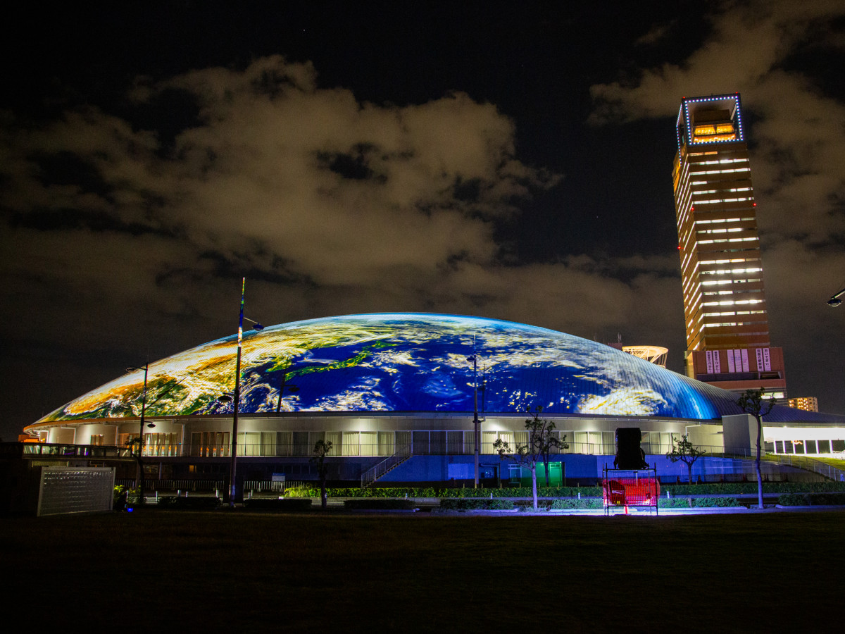 宇宙や地球など壮大なモチーフの映像も流れる=あなぶきアリーナ香川でプロジェクションマッピング ハロウィーン題材に