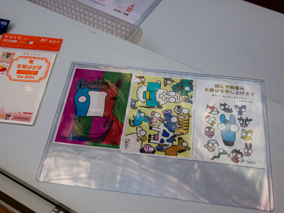 購入者に進呈されたTaichiさんとShotaさんによるポストカード=年賀はがき販売スタートで双子アーティストがライブペイン