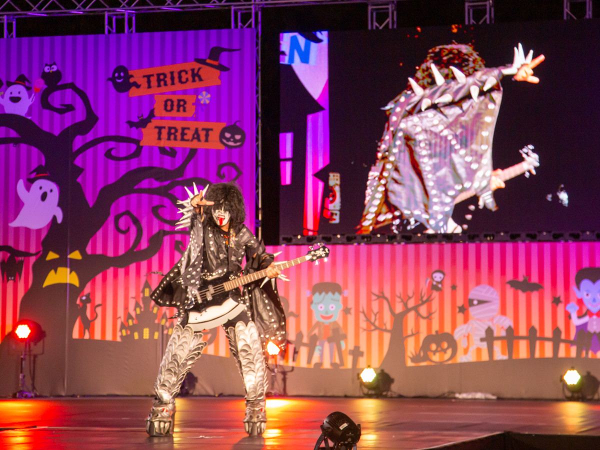 40万円かけてロックバンド「KISS」メンバーに扮した「いーたん」さん=サンポート高松でハロウィーン仮装コンテスト