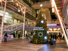 高松シンボルタワー(高松市サンポート)のデックスガレリアで11月14日、クリスマスツリーの点灯式が行われた。