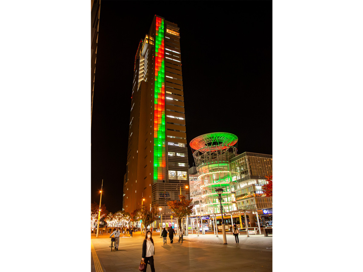 高松シンボルタワー(高松市サンポート)のデックスガレリアで11月14日、クリスマスツリーの点灯式が行われた。