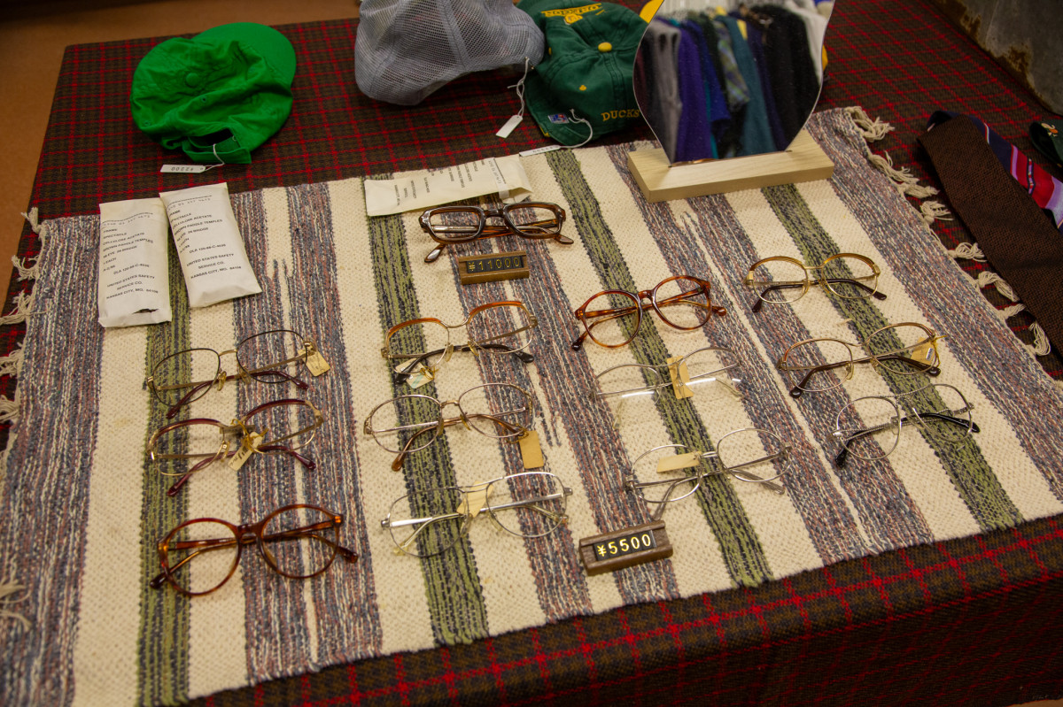 ビンテージのアイウエア 奥の商品は米軍製のデッドストック=三木町に古着店「skog(スコーグ)」