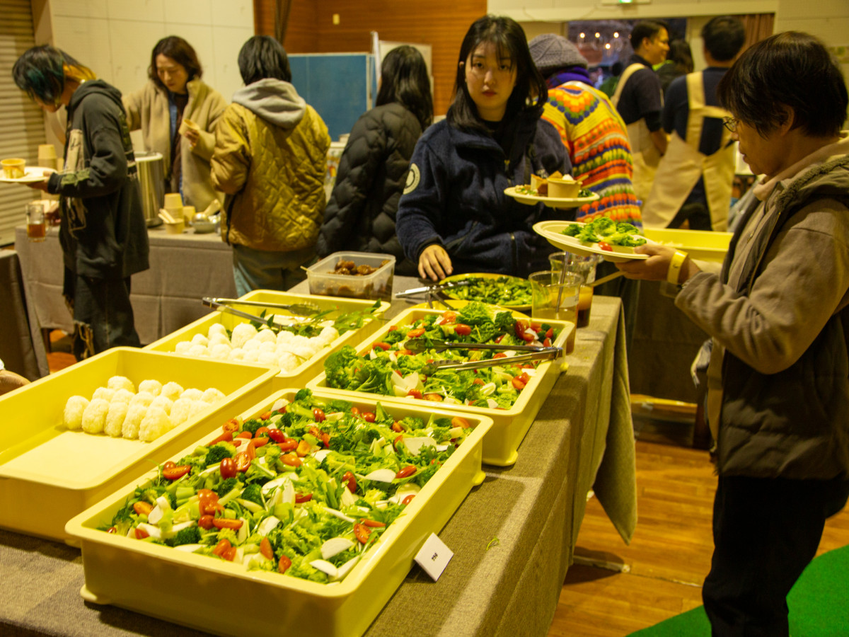 地元で収穫した野菜を使った料理も並ぶ=高松・塩江の旧上西小学校でオクトーバーフェスト