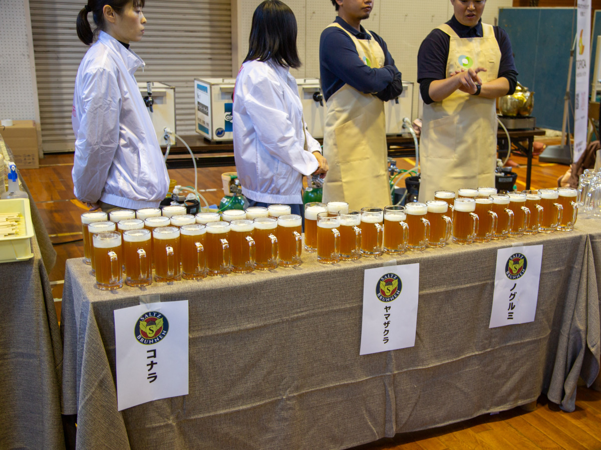 塩江の木を使ったクラフトビールと、イノシシや地元野菜を使った料理を提供するイベント「塩江オクトーバーフェスト」が11月22日、旧上西小学校(高松市塩江町上西乙)で開催された。