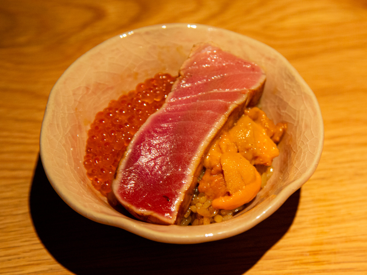 「魚焼肉」5種盛り サーモンやタイ、マグロの頬肉や中トロなどが並ぶ=高松・フェリー通りに「魚焼肉と旬の海鮮居酒屋 出世魚」
