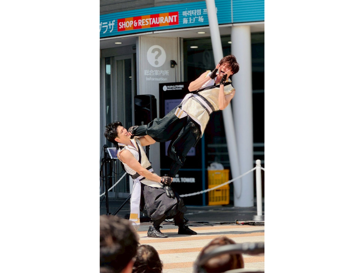 「MK-II」のパフォーマンス 殺陣やアクロバットパフォーマンスを見せる=高松シンボルタワーで新春イベント「マリタイムプラザ ニューイヤーパーティー2026」