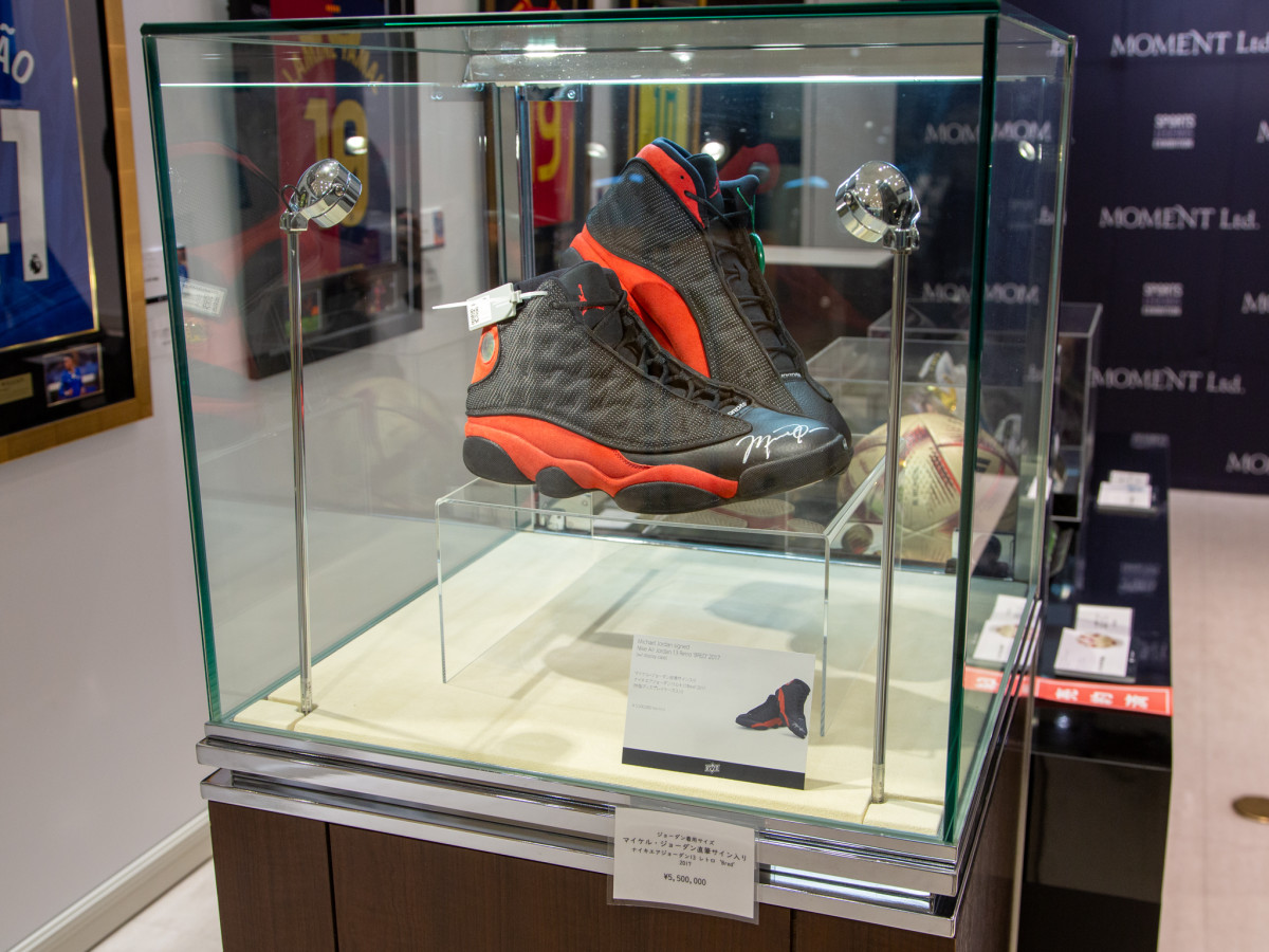マイケル・ジョーダンのサインが入った「NIKEエアジョーダン」=高松三越で大谷選手ら直筆グッズ展 前園真聖さんも来場