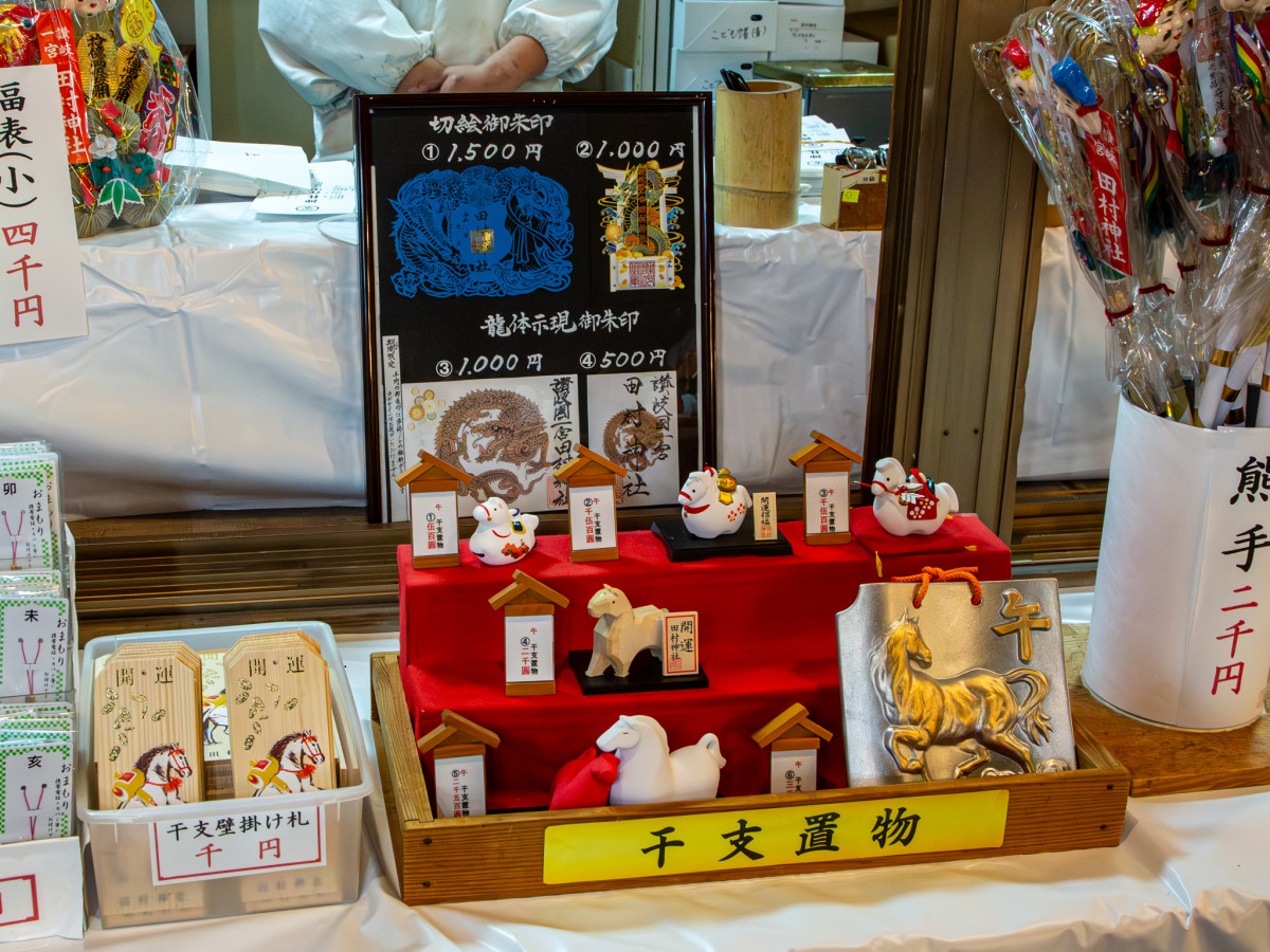 干支の置き物や切り絵の御朱印も=高松・田村神社に初詣の列130メートル超