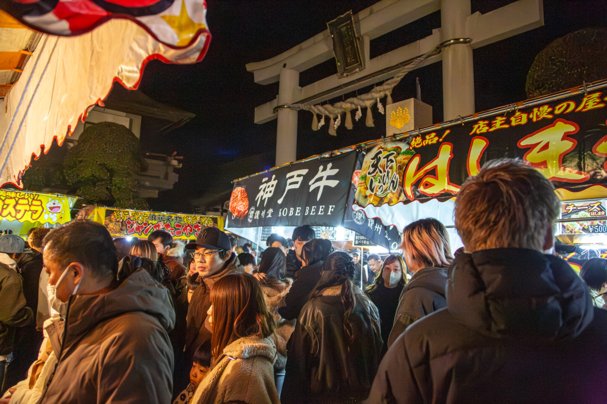 参道に並ぶ屋台=高松・田村神社に初詣の列130メートル超
