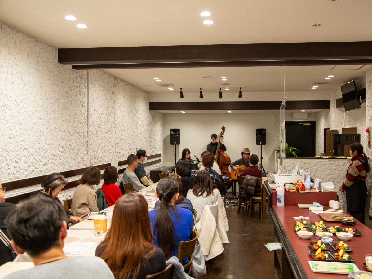 オープニングイベントで演奏した「Django Tigalle(ジャンゴ・ティガール)」=高松・藤塚町に「どれみふぁカフェ」