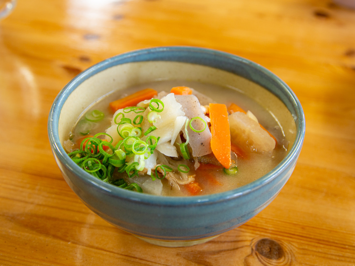 ニンジンや大根、こんにゃくなどを入れ、白みそで仕上げた「しっぽくうどん」=さぬき市長尾寺境内にうどん店「溜」2号店