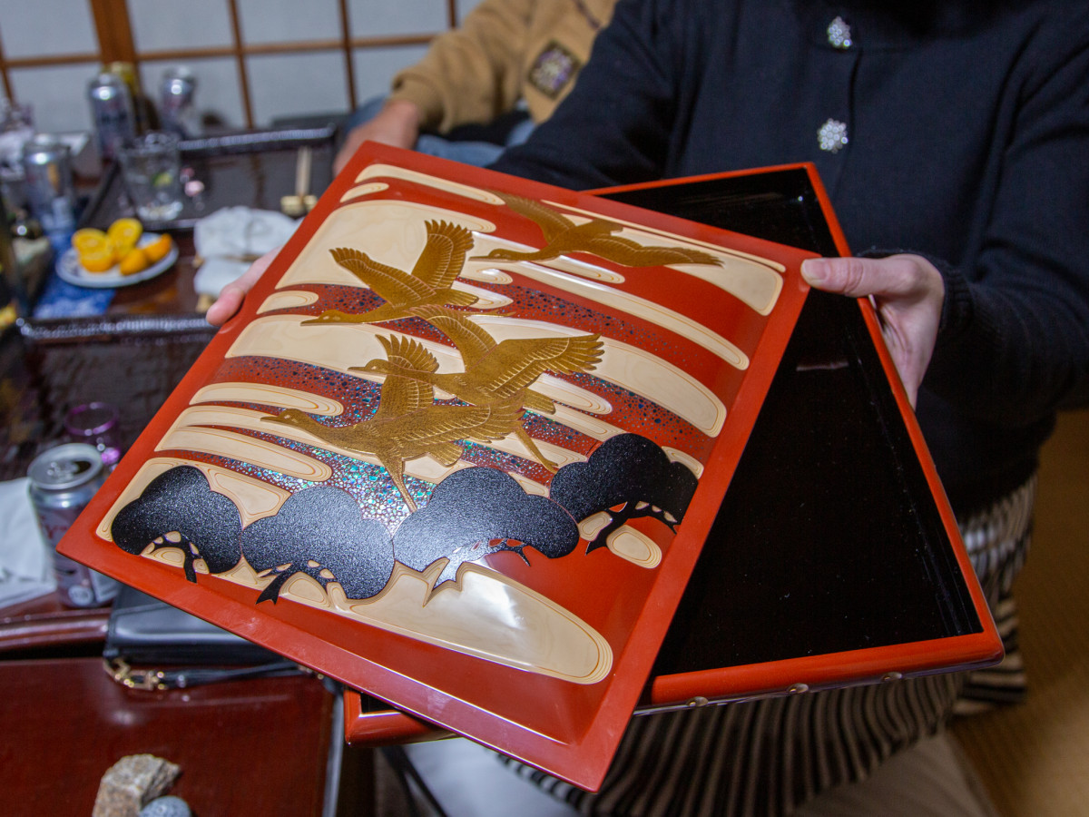 耕堂が晩年作ったふた付きの器 青貝細工が施されている=高松で香川漆芸巡る高付加価値ツアー「香川サステナブル・ツーリズム(仮称)」実験