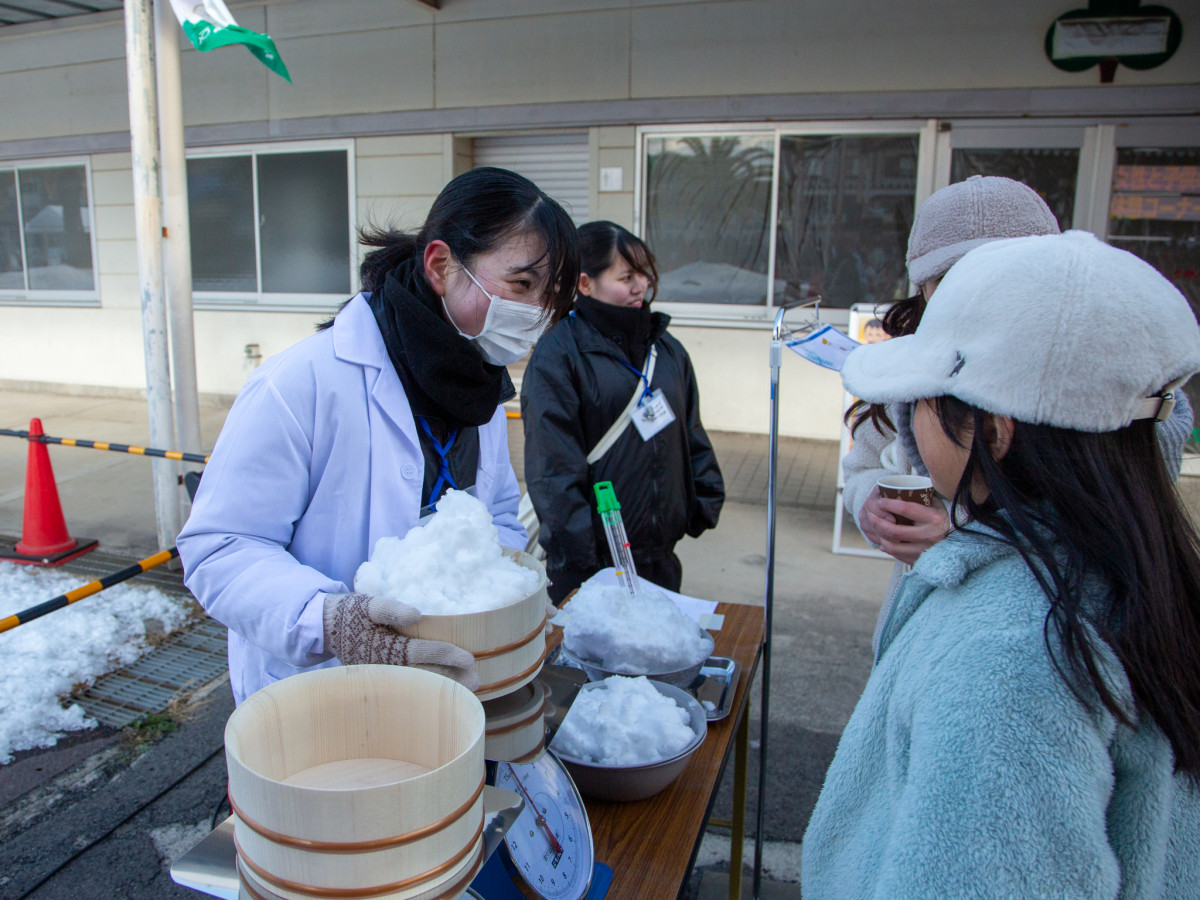 雪の重さや温度を測る実験コーナー=高松競輪場「チータカ広場」で「高松けいりん 雪まつり~冬のワンダーランド~」