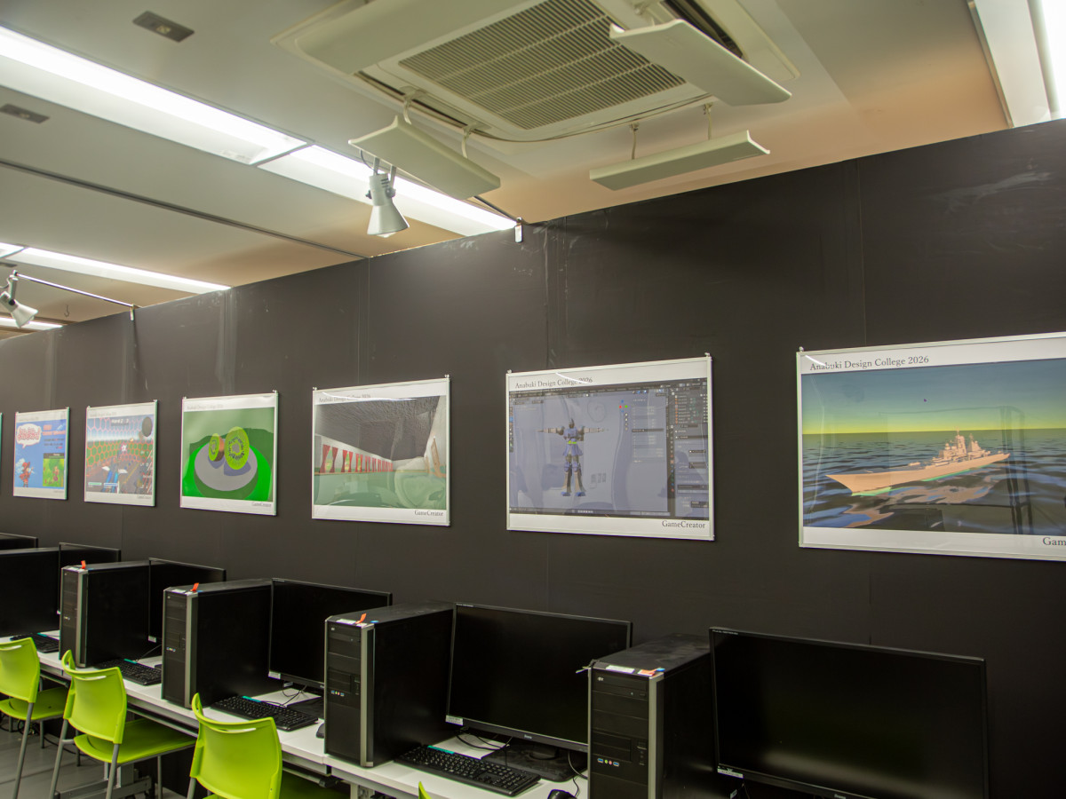 ゲームクリエイター学科のブース パソコンで遊ぶことができるほか、VRコンテンツも用意する=高松・穴吹デザインカレッジで「デザイン展’26」