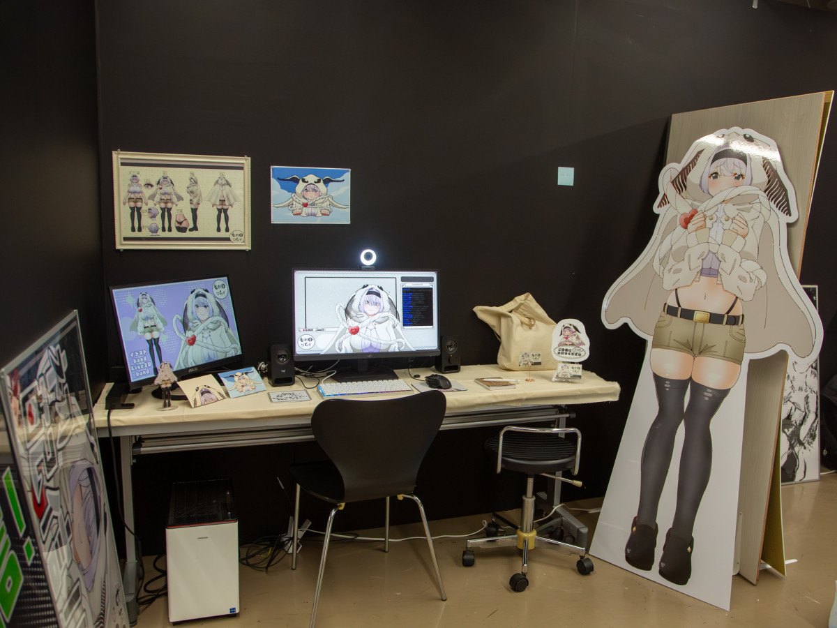 マンガ・コミックイラスト学科の生徒がデザインしたVtuber カメラで動きを検知して動くほか、キーボードで表情を変えることもできる=高松・穴吹デザインカレッジで「デザイン展’26」