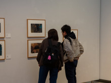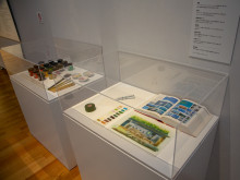 「冒険」のコーナー オブジェに貼られたアニメ「ルパン3世」の原画が目を引く=高松市美術館で「山本二三展」 ラピュタやもののけ姫、名作の世界を紹介